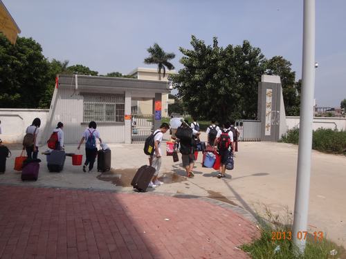 七月流火的一行人,伴随着艳阳高照、阳光明媚的天气,一大早就意气风发地拖着大箱小箱,带着大包小包的行李从宿舍出发,踏上为期两周的三下乡漫漫之路。可惜天公不作美,天气异常炎热,让拖着沉重的行李的大家都汗流浃背,暗自叫苦而又无可奈何。但是酷热的天气并没有扑灭大家对三下乡的热情,大家还是满怀期待地迅速地把行李堆放好,踏上三下乡的征途。