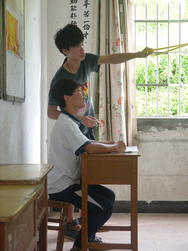 坐在课室的后面,感受你们和孩子们的互动,感受你们一点一点知识的传授,不管是好学的孩子也好,调皮的孩子也罢,都会热心的帮助他们,让他们在这10天能改变对以往学习很枯燥的想法,激发他们学习的热情。