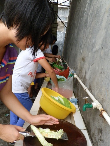虽然后勤组的工作很幕后,很吃力不讨好,不过我还是很享受当大家忙碌与备课教课之时,还可以坐在阶梯上摘菜,享受着阳光,享受着偶尔吹来的清风,那是我每天最平静最舒适的时刻了,看着一盆盆的食材变成一碟碟煮好的菜,即便样子跟味道都跟预期的”私房菜”截然不同,看着菜被端上,被抢空,被赞美,那种满足感是无法用言语表达的。