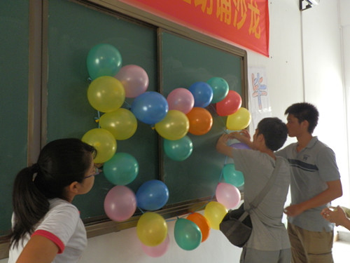 早在中午,我们便开始准备舞台布置的物资,文娱组的成员也去查看了解音响设备,保证在即将到来的典礼上能一切顺利。