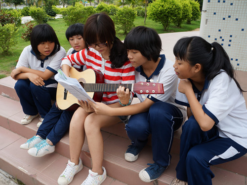 或许我们没有崭新的书本,但是我们懂的珍惜懂得分享。上课前都害怕自己的课勾不起他们的兴趣,事实上,他们的求知眼神才是我最甜蜜的负担。