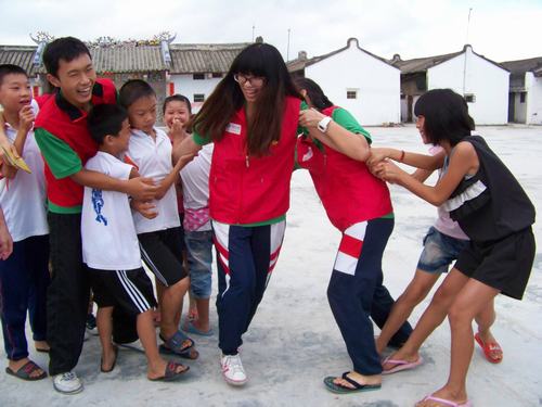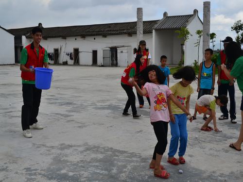 在这次的素拓活动中,扬爱义夏的队员们为同学们准备了三个游戏:半斤八两、水桶接球和解手链,我们希望借助这种团体活动,培养参与者的团队合作精神、领导分工的能力和独立自主创新的精神,进一步增进志愿者和农民工子女的感情,
