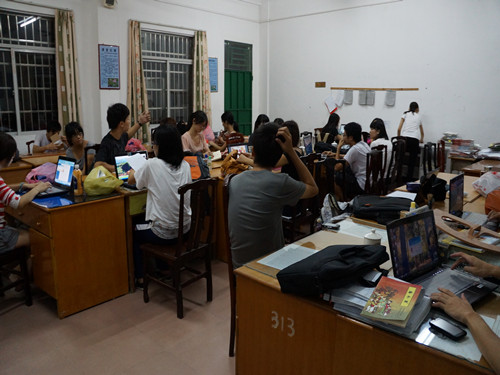 经过和学生一天的接触以及上了一个下午的课,各位义教老师对学生有了进一步的了解。到了晚上,各位义教老师都齐聚办公室,纷纷调整自己的教案。每个义教都是对着电脑屏幕,或眉头紧皱,或欣然开怀,都在苦思冥想着如何设计自己的课程,力图在这短短的45分钟之内给学生带来最精彩的历程。