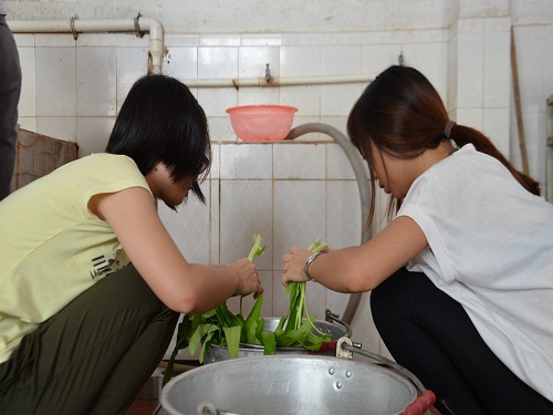 大厨们细致地洗净每一根通菜