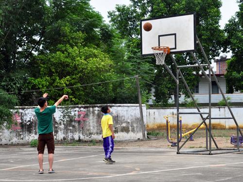 “今天是第一次上篮球课,虽然是第二次,但是还是很紧张,不太敢走过去,那些孩子们的篮球技术真的很不错的。但却没有想到的是,他们竟说:‘老师,快过来打篮球呀!’还招呼让我快点过去,那时真的很感动很感动。然后,有很主动地让我围圈转球打比赛。这些都是出乎意料的,很感动。他们篮球打得真的很好,很厉害,我都有点惭愧了。”