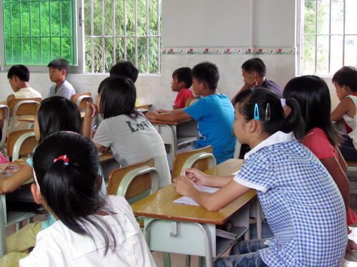 “昨天上的人文地理课因为没有地图和图片,只能靠想象,效果不是太好。今天特地找了图片,用我们唯一一间多媒体教室为孩子们上课,再加上今天课堂纪律比较好,效果明显好很多了。虽然有几个男生依然很调皮,但是至少态度有所缓和。看得出来孩子们对地理还是很感兴趣的,大部分人笔记都做得很认真,当我把我们的校园风光展示给他们的时候,我看到他们渴望了解外面的世界和渴望上大学的眼神。”