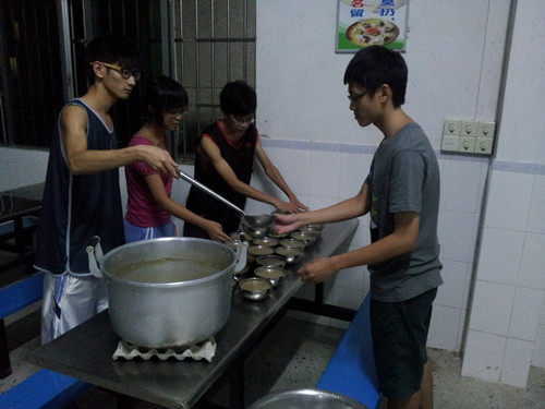 热的夏天,队员们依然一直很努力地工作。作为后勤组的一员,更应该在背后给予他们最大的支持。因此,利用下午空余的时间,我和队长伟健、后勤组组长梓涵一致决定在晚上的时候煮点糖水犒劳一下队员们,以缓解他们一丝的压力,想给他们一个惊喜。