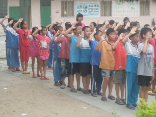 因为当时我是升旗手,所以没有看到下面的情况,现在看照片才知道当时孩子们都在庄严地举手敬礼,心里很有感触,自己上一次如此认真地为国旗举起右手应该也是和他们差不多年纪吧。