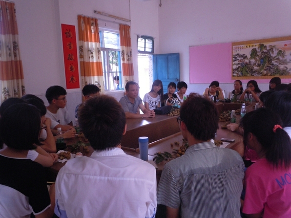 下面这幅照片是我们刚来到大村小学,校长和我们开会的场景。