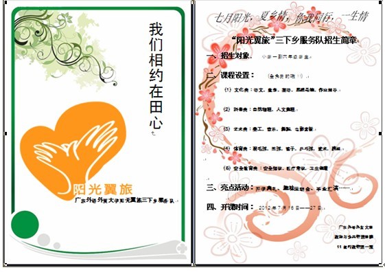 经过将近两个月的筹备,“阳光翼旅”团队已经。七月,我们相约在田心,阳光翼旅,我们在路上!欲知更多详情及下乡动态,请关注“阳光翼旅”三下乡官方微博:@广外11行一阳光翼旅三下乡服务队。