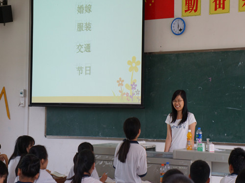 上课的时刻终于到了。或许是因为这是生平第一次教书,颠覆了我之前在讲台下当学生的角色,我竟然有稍些紧张稍些激动。台下的朋友们个个瞪着大眼睛,天真地望着我,我笑了笑,开始我的讲课。刚上课时,小朋友们都比较沉默,后来慢慢就开始活跃起来,问的问题很搞笑,回答问题时总是想到什么就说什么,还不停地问我对不对,前排的几个小朋友更为活跃,我真心觉得他们很可爱,很有活力!
