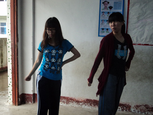 为了下午的毕业典礼中的节目努力排练