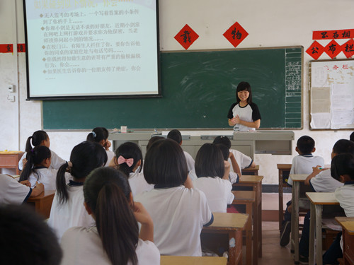 经过这么几天的备课和教学生活,我才真正感受到做老师的不容易,所以当第一次听到有小朋友叫我老师时,看到他们纯真的笑脸时,突然觉得很感动,开始很期待了解他们,期待给他们上课,期待同他们分享我们的经历,期待同他们留下属于我们的美好回忆。由于课程安排的原因,在备了三天的课后,终于迎来了我的第一节课,可是在临近上课前却莫名地有点紧张,各种担心涌上心头,怕自己不能把知识讲好,怕小朋友们不配合,怕不能把准备的内容讲完,但当真正站上讲台,向孩子们传输了我想讲的知识后,孩子们积极的反应,热烈的回答让我变得更轻松,也能够跟孩子们相处得更愉快,人生中的第一次授课,让我收获很多,感到很温暖。