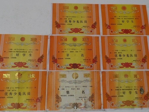 学生家粘贴的奖状