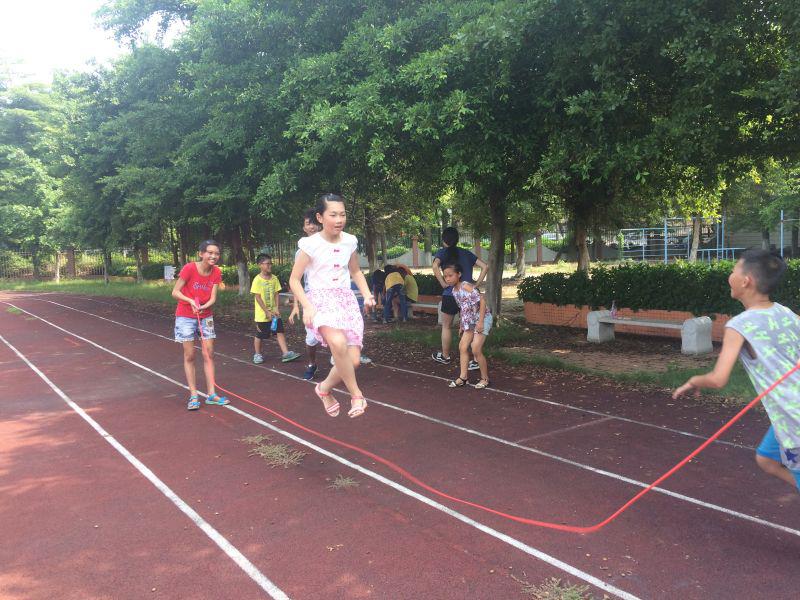 一场乒乓球比赛下来,同学们的热情丝毫没有减弱,紧接着就开始了下一个赛事——跳绳比赛。一开始的跳绳比赛同学们都十分努力争夺胜利。但是比赛结束后,不知是跳绳的乐趣太大还是被还在玩跳绳的同学的灿烂的笑容影响,孩子们玩起了“大合跳”,不计输赢,看重的只是团队合作。期间,老师和助教也被孩子们的灿烂笑容影响,数次加入了游戏当中。