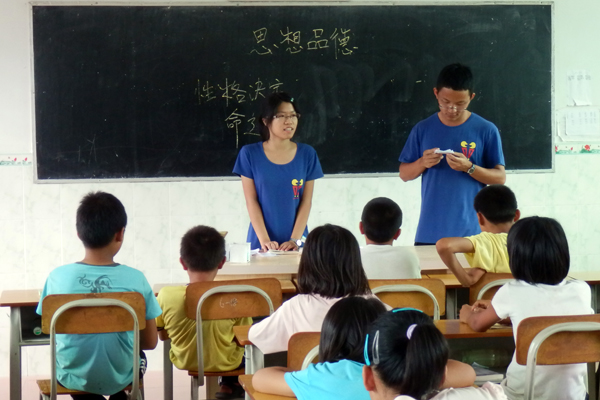 在放学以后与孩子们相处的时候一样让我们感到很开心,开心是会传染的,看着孩子们开怀的笑容我们一样也会感到很开心,即使刚洗完澡再出了身汗也觉得没有关系。今天看到了孩子们和我们班的男生在玩老鹰抓小鸡,耗子的衣服已经被完全扯得变形了,可是他也没有介意,依然和孩子们打成一片,然后我后知后觉地发现我们班的男生都很好“欺负”——他们都很宠爱这些孩子,每当看着孩子们扯着他们的衣服,或是要他们背,吊在他们身上的场景时,都有一种很温暖的感觉。三下乡的活动仍然在进行着,希望明天的我们和那群调皮而又活泼可爱的孩子们都更加开学地度过每一天,也给彼此带来更多的温暖。