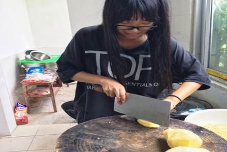 不知不觉中,离三下乡活动的结束仅剩下一天,后勤组的组员在临走前为同学们准备最后一餐“自家饭”,义教组的组员也为学生们准备了最后一个活动——牌艺互动大赛。