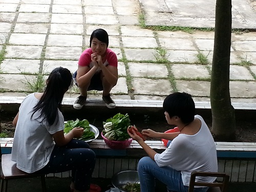 边择菜边话着我们行二人的“家常”,入乡随俗,生活在一起的行二大家庭在下乡中变得团结、紧密。