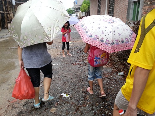 清晨买菜归来,与我们同行的是早早来校学习的学生。略昏暗的天色下着小雨,我们走在雨里,走在一片静谧中。