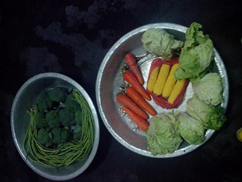 由舒婷、嘉雯、积极哥组成的采购组,不到几天就和卖肉的老伯,买菜的大婶建立了长期的合作关系,有些市面上没有的菜,可以通过预定让老板进货,而且由于采购量大,我采购方还享受到免费送货上门并赠送小葱一把的福利。至于干货一类,我们更是深刻体会到货比三家的时效性。估摸着是存心想坑我们,很多店铺的价格都比平常价格每斤多了五毛或一块,像木耳的价格更是翻了一倍,当时就后悔没让踩点的同学整一份物价清单。好在还是有职业道德的商家在,总算让我们没被坑多少。尽管知道卖肉的老伯肯定赚了我们不少,但是当我们最后一天去到市场告诉他我们就要走了以后都不会买肉了的时候,看到他失望的眼神确实又有些不忍。平日采购的娃告诉我说,前一天她们还埋怨老伯说他来的太迟害的她们等了好久,结果今天他就早早地来了。听到这里,以往多少的不满都烟消云散了,采购的最后一天,我们微笑着和市场上的人们道别,和杂货铺的姐姐吹水,十几天的相处,到底还是有些不舍的。