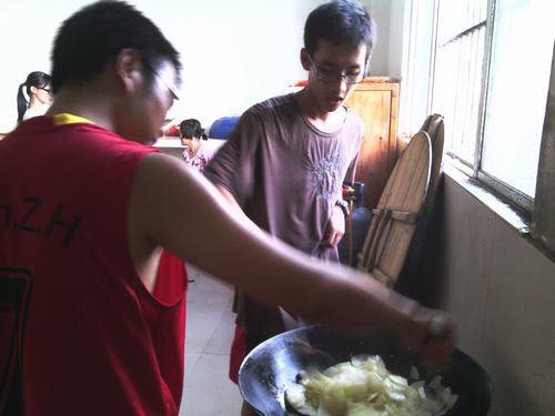 如果每天都是重复单调的切菜、洗菜、煮菜,那真的是太无聊了。可是,强大的后勤组怎么会就这么让一段时间虚度呢?以后勤组组长为首的一群“歌神”,总是会忍不住高歌一曲,从“最炫民族风”到“彩云之南”,时间跨度之广,下限跨度之大实在是难以形容。偶尔唱到一些耳熟能详的歌,来打下手的同学也会跟着唱起来。一时间厨房里就会飘荡着歌声。你说,这怎么会无聊?