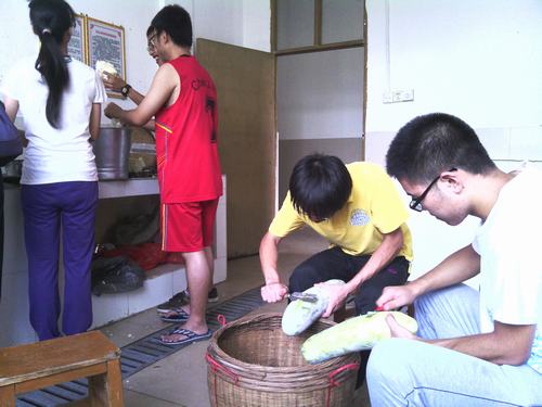 后勤组,作为控制一支队伍的温饱问题的重要后援,每天都要思考三个重要的问题,那就是:早上吃什么,中午吃什么,晚上吃什么。不过,后勤组的趣事还是很多的,每次在厨房里都有各种欢声笑语。