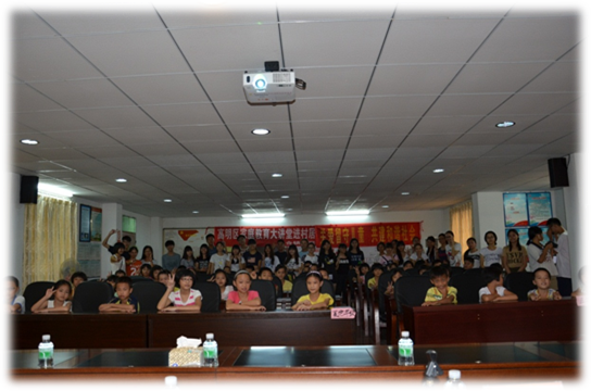 最后,队员们在队长的带领下喊起口号,表示对义教活动坚定的决心和对小朋友们负责的态度。令所有队员惊讶和感动的是,在场的所有小朋友们也跟着喊起了口号:“行义合水,与你共进”,成熟和稚嫩的声音共同宣誓,标志着开学典礼的圆满结束和义教活动的完美基调。