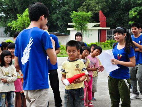 八点钟左右,一切东西都已准备就绪了。队长和支教组的队员们在等待着陆陆续续来签到的学生们。看着一张张陌生却亲切,黝黑却满是童真的面孔,其实每个队员的心里都按捺着一种激动,大家都笑得很舒心!