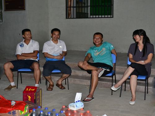 7月15日是社工班“扬爱义夏”下乡的第一晚,团揭阳市委副书记吴群辉,团揭阳市委宣传部部长方骏升在团揭东县霖磐镇委书记王颖的陪同下来到霖磐镇志愿者服务站慰问广东外语外贸大学政治与公共管理学院11社工班“扬爱义夏”三下乡服务队队员,并为同学们带来了解暑的慰问品。