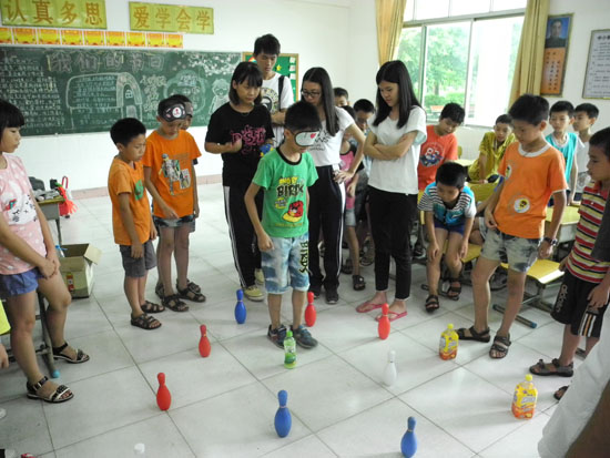 孩子们互相帮助,齐心协力穿过“地雷阵”