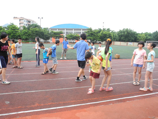 在操场,孩子们总是格外亢奋。好不容易解释清楚了规则,确定了接力的顺序,激烈的比赛终于开始了。