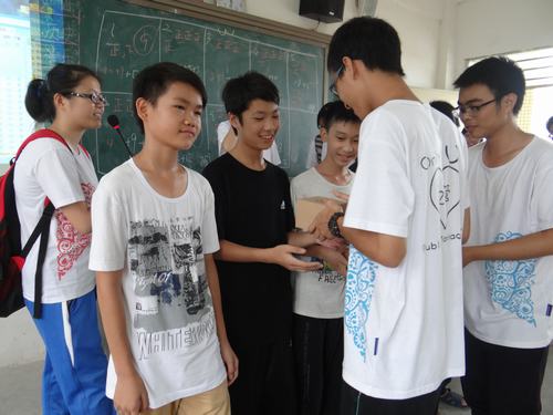 虽然昨天晚上是我守夜,只睡了一个多小时,但是今天我还是精神满满,因为今天我们将要举行趣味运动会。不过,天公不作美,还是下起了一点雨,所以按照应急方案,我们将活动改为在课室里玩小游戏。整个游戏过程由6个小游戏组成。两个班被平均分成9个小组,有8个小组由我们的队员带队。