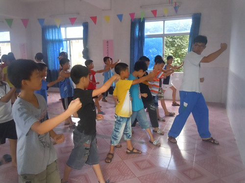 小朋友们在认真学习武术