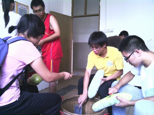 我忽然意识到,时光的笔是用清水作墨水的,划过每天色彩纷呈的纸页,风轻轻吹过就没有任何痕迹了。掐指算算,我当上后勤组的组长已经有十天那么久了,然而十天又那么短,再过四五天我就要卸任了。说实话我心里真有点儿不舍,同时感到一丝遗憾。我感觉后勤组是一个十分有活力的地方,无论是买菜还是在洗菜切菜还是做饭煮菜,我们是欢乐的,每一天都是充实的。