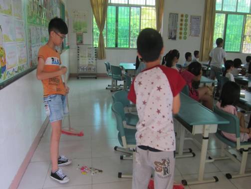 由于天气炎热,课间休息时间小朋友们竟然都一反常态,没有出去玩,而是安安静静地坐在教室里看电影,有些班级活泼的男生则打开音乐播放器,带大家一同唱起了歌。还有乖一点的小朋友,趁着课间休息的时间做起了值日,拿起扫把打扫卫生,真是有模有样。