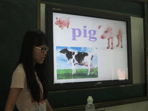 第二节课,二班和三班都是英语课。二班的詹媛婕老师力图从有趣的知识入手,从食物和动物教起,然后引入相关单词,由于是小朋友感兴趣的话题,他们听得很认真,也十分活跃。轻松愉悦的课堂气氛让人倍感欣慰。