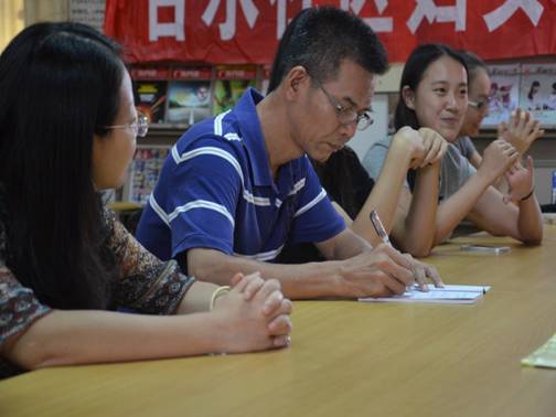 义教组向老师介绍了我们的课程设置和孩子们的反馈,后勤组介绍了确定食谱的前期与后期准备以及购买,烹饪的过程,调研组向老师阐述了关于产业转型升级的主题报告构想,简单描述了调研过程和体会,宣传组简要介绍了宣传工作的几大块内容,相应风格和进程。