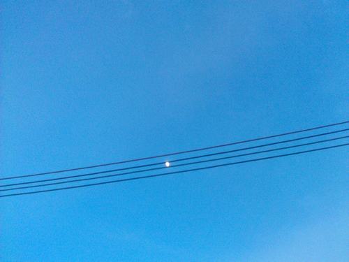 蓝,蓝,蓝,像是要把我一同融化进去的蓝色。月亮与电线的巧作之和。
