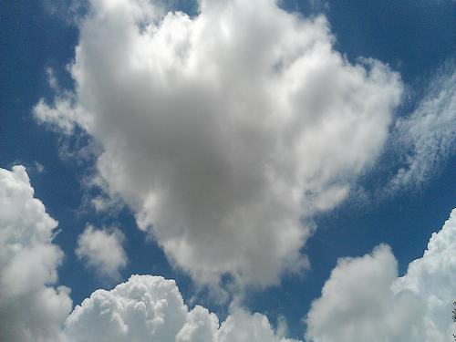 喜欢云朵,看的多了,总觉得云朵与我,已经建立了某种默契。开心时,望望天,看看云,云朵好像同你一起咧嘴笑;难过时,更要抬头望天空、云朵,它的辽阔,它的自由,带着你一同飞,飞,飞…….
